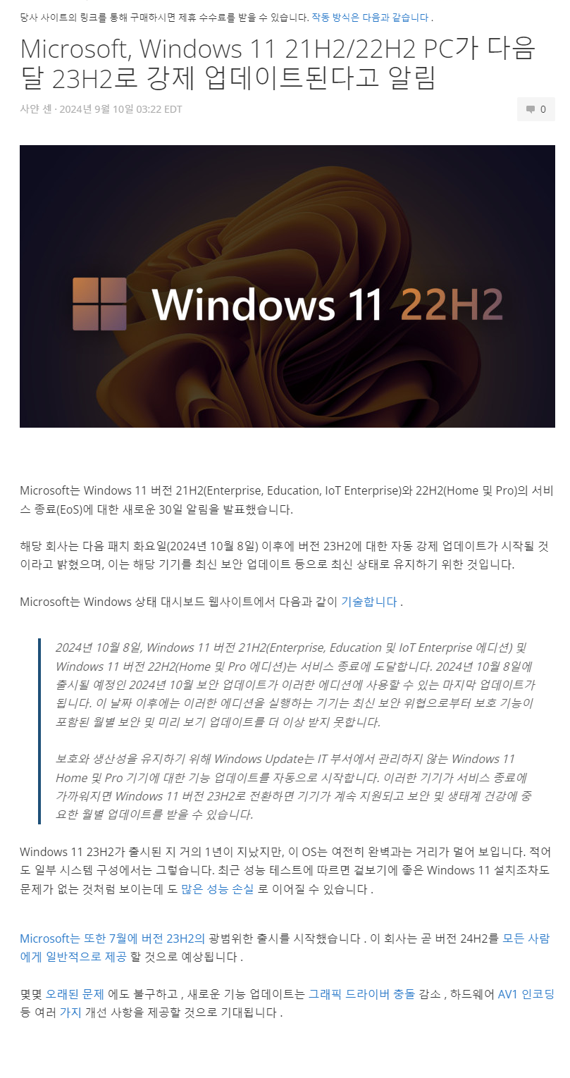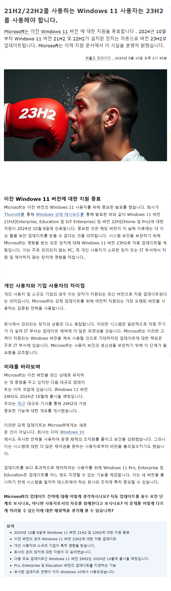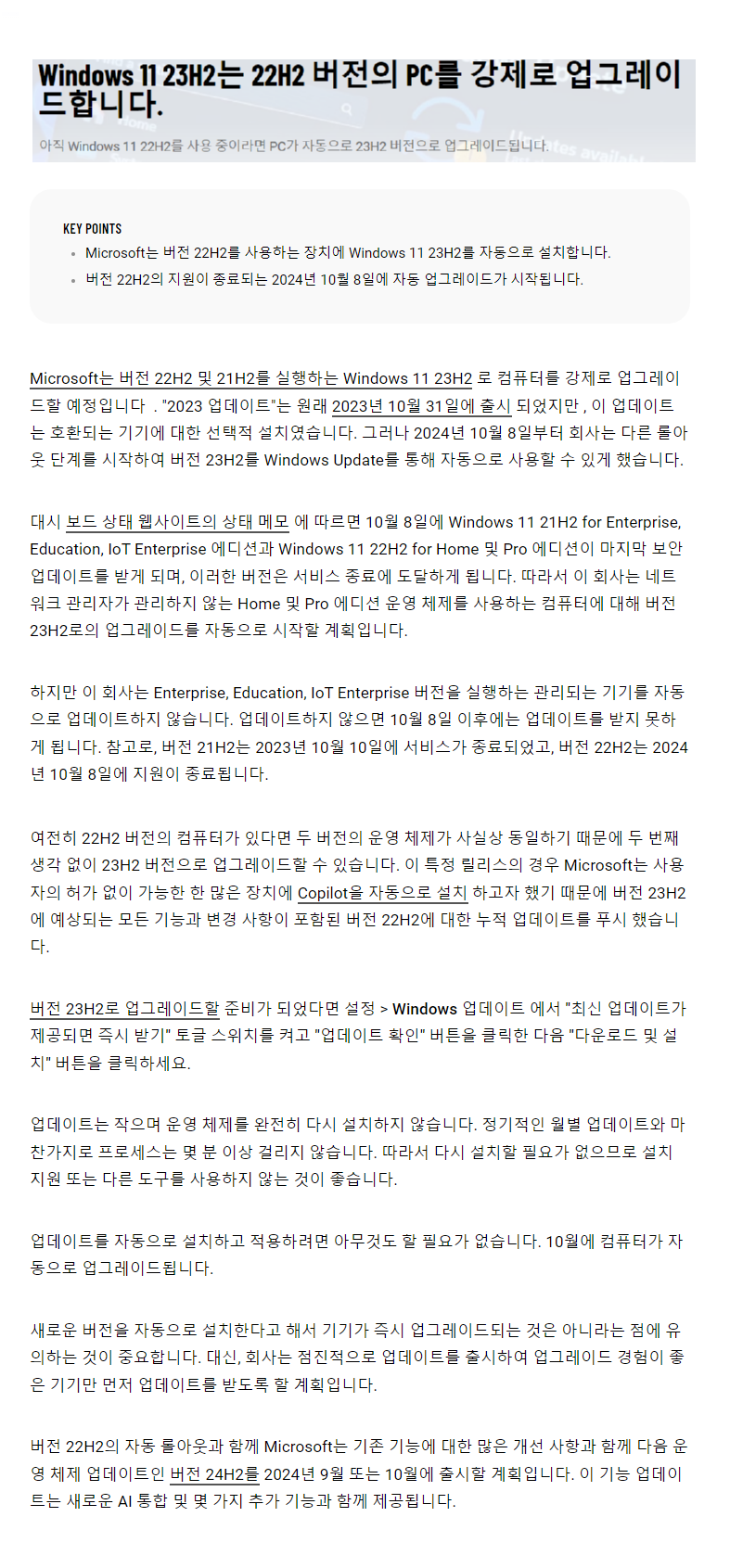 - 2024년 10월 8일에 Windows 11 버전 21H2 및 22H2에 대한 지원 종료될 예정입니다.
