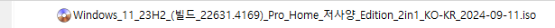 | Windows 11 23H2(빌드 22631.4112) Pro Home 저사양 에디션 2in1 [배포 종료] (1) | 2024.08.28 |