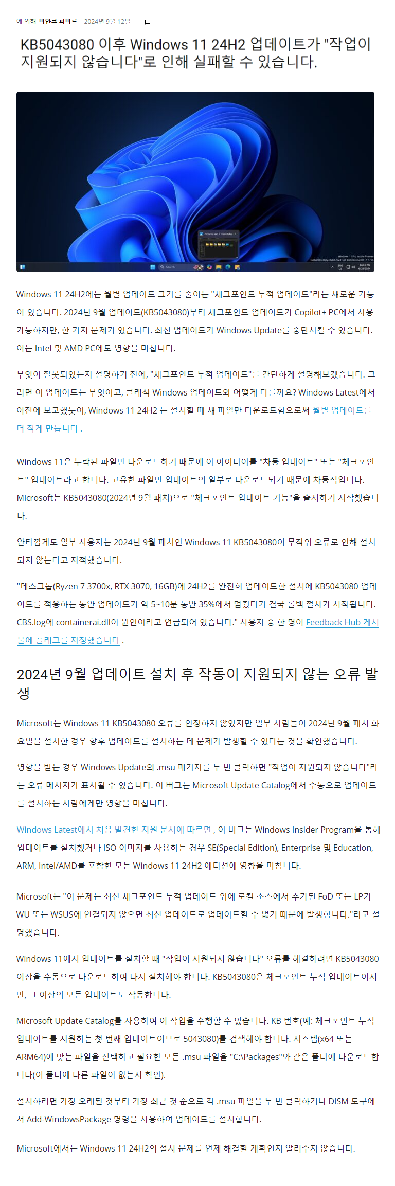 | Windows 11 24H2 체크포인트 업데이트를 시작 (2) | 2024.09.13 |