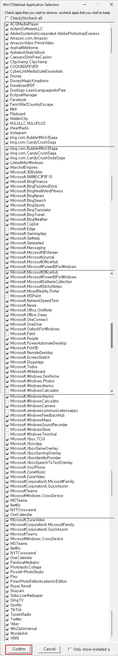 선택완료 후에 [confirm] 버튼을 눌러주면 앱 삭제가 시작됩니다.