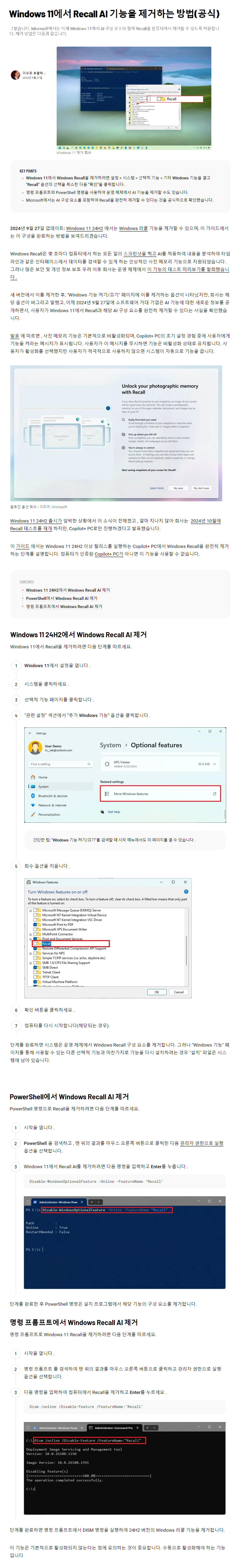 | Windows 11에서 Recall AI 기능을 비활성화하는 방법 (0) | 2024.09.28 |