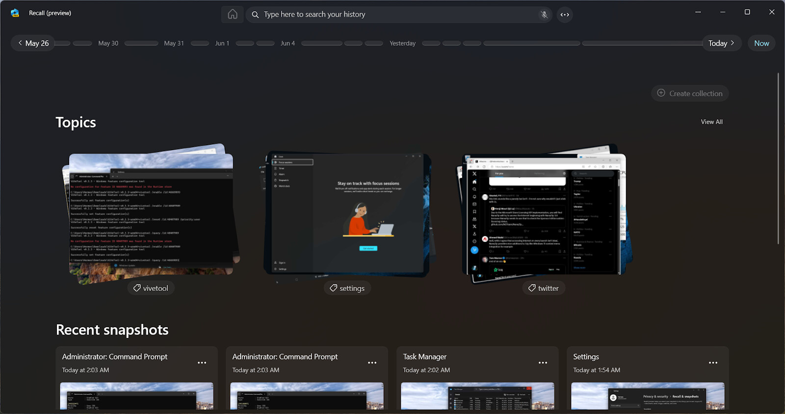 리콜 기능은 일정 시간 마다 PC 화면을 캡처하여 PC에 저장하는 기능입니다.