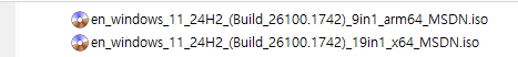 | Windows 11 24H2 (빌드 26100.1742) MSDN 정식 버전 ISO 파일(x64 & ARM64) [한글/영문판]🩹💊🩹💊 (30) | 2024.10.02 |