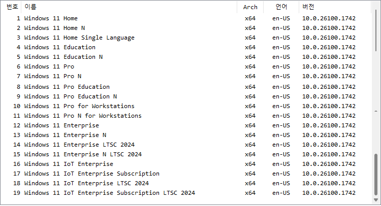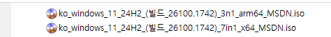 Windows 11 24H2 (빌드 26100.1742) MSDN 정식 버전을 에디션 통합한 겁니다.