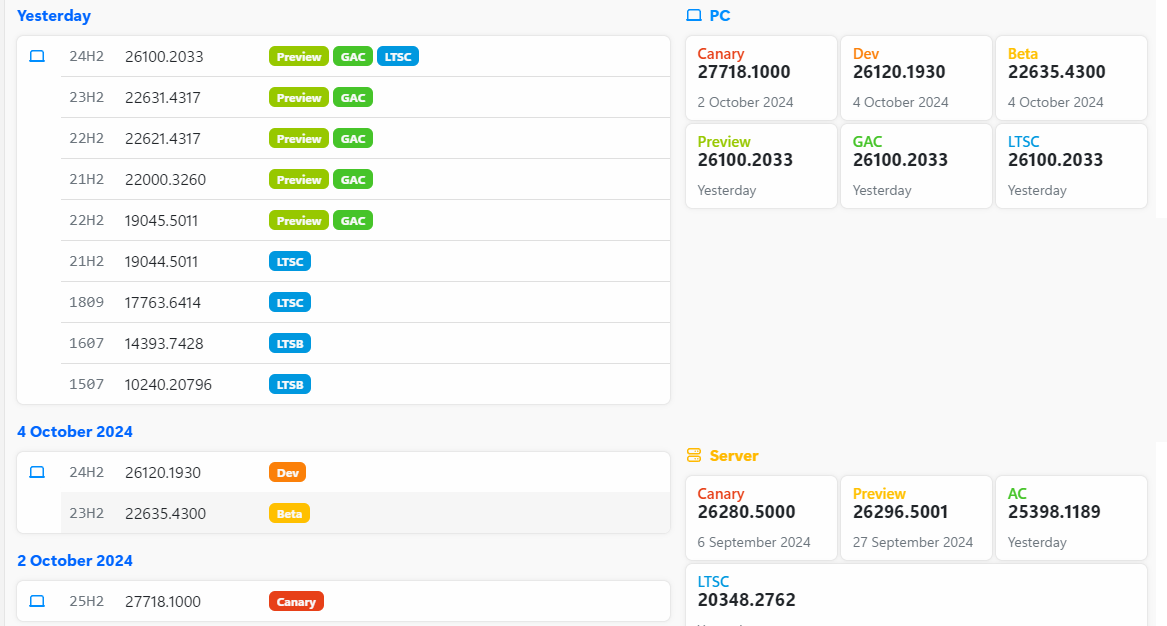 ○ 일반 사용자 채널 = Windows Server 2025 RTM : 빌드 26100.2033 (= 일반 사용자 빌드)