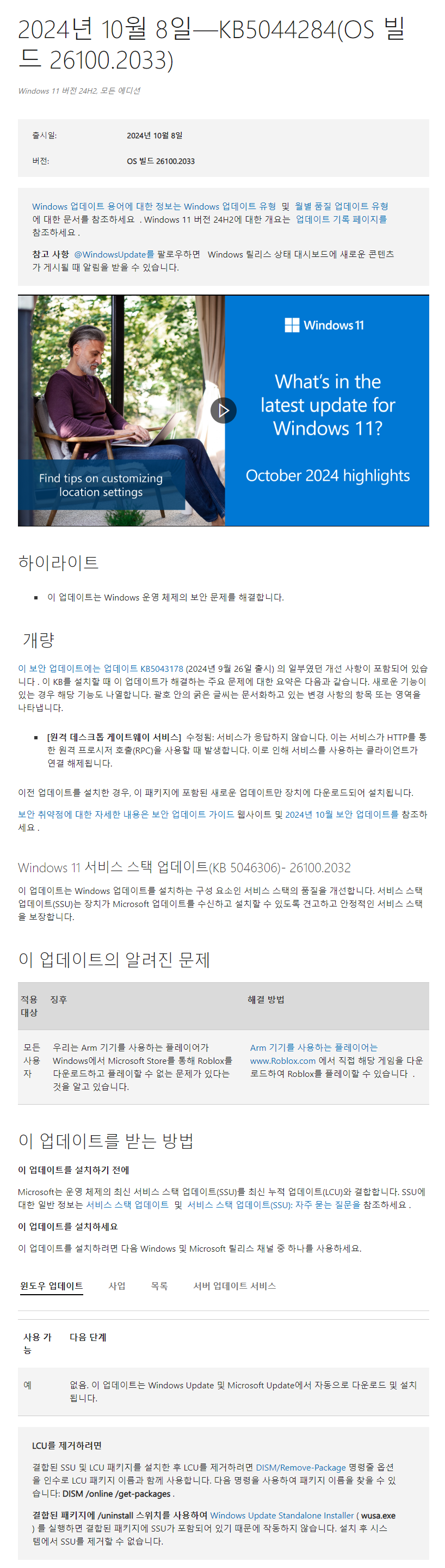 1. Windows 11 24H2, 빌드 26100.2033으로 업데이트하는 방법 (= 일반 사용자 자동업데이트 전용)