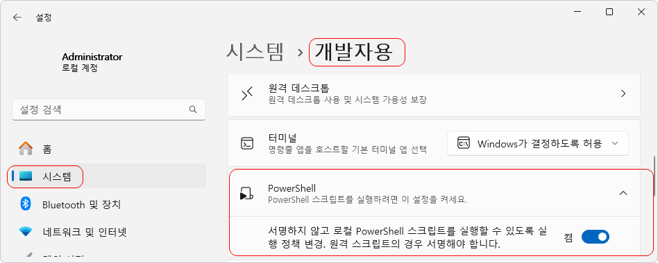 [파워셀이 실행안될 때, 아래 처럼 설정하세요]