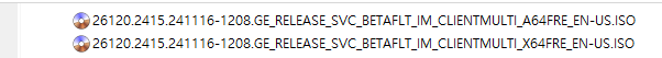 아래 파일은 UUP dump에서 배포하는 스크립트를 이용해서 MS에서 배포하는 파일(ESD, cab파일)로 만든 순수 ISO 파일입니다.