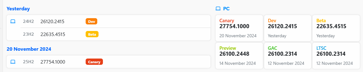 ○ 미리보기 채널 [Release Preview] = Windows 11 : 빌드 26100.2152 (= 참가자 빌드)