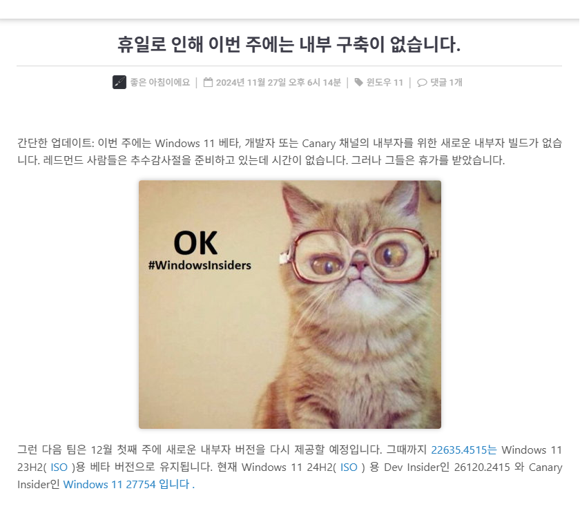 | Microsoft는 Windows 11 12월달 비보안 선택적 업데이트를 출시하지 않을 것입니다 (2) | 2024.11.16 |