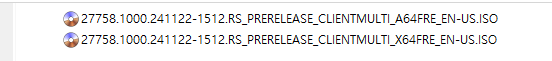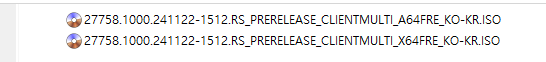 아래 파일은 UUP dump에서 배포하는 스크립트를 이용해서 MS에서 배포하는 파일(ESD, cab파일)로 만든 순수 ISO 파일입니다.