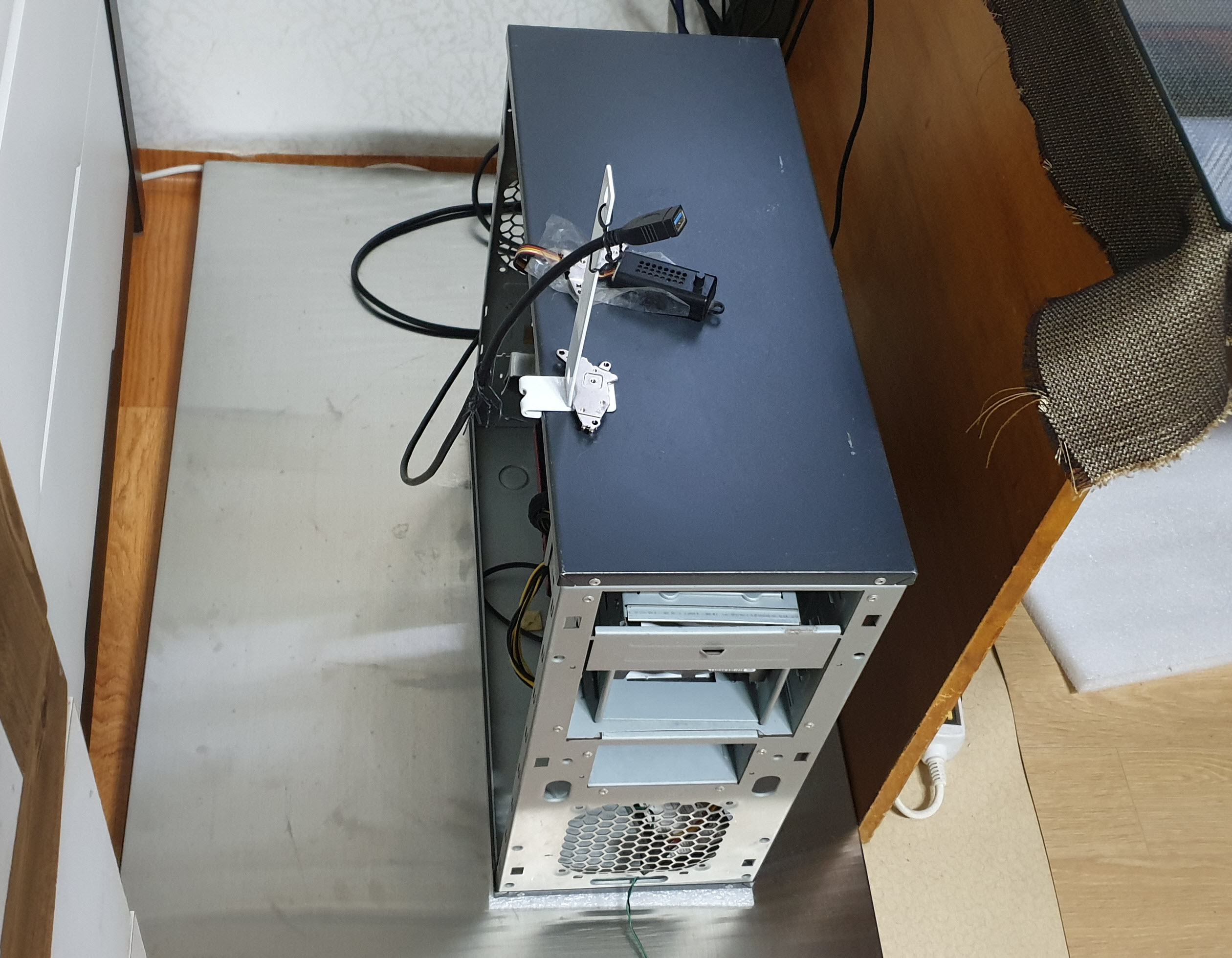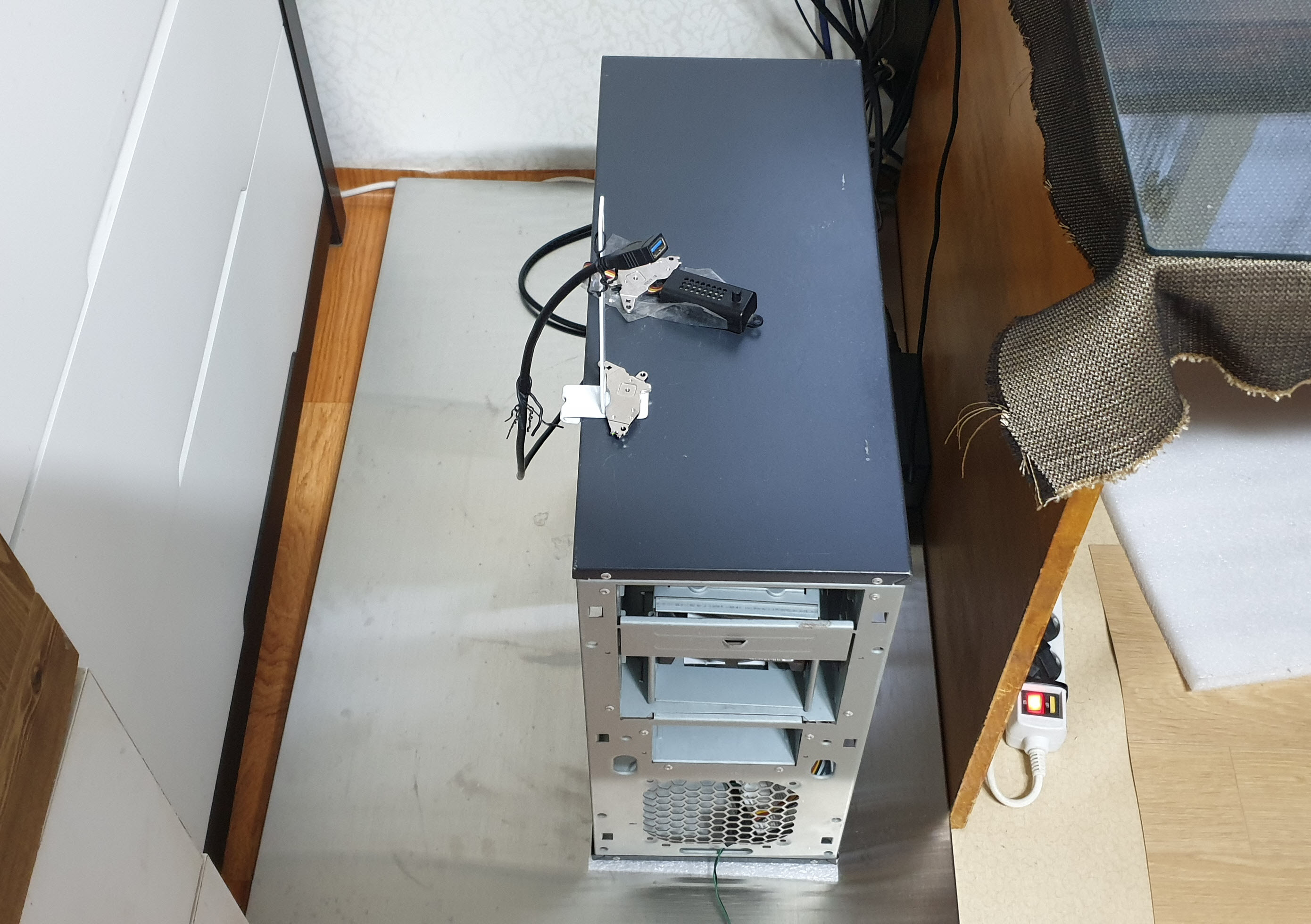 컴터 케이스 자체 떨림 소음을 줄이기 위해 컴터 케이스 밑에 스펀지를 깔아주었습니다....