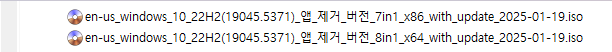 KB5049981 = 최신 누적 업데이트(19044.5371 / 19045.5371) (Last Cumulative update : LCU) (2025-01-14)