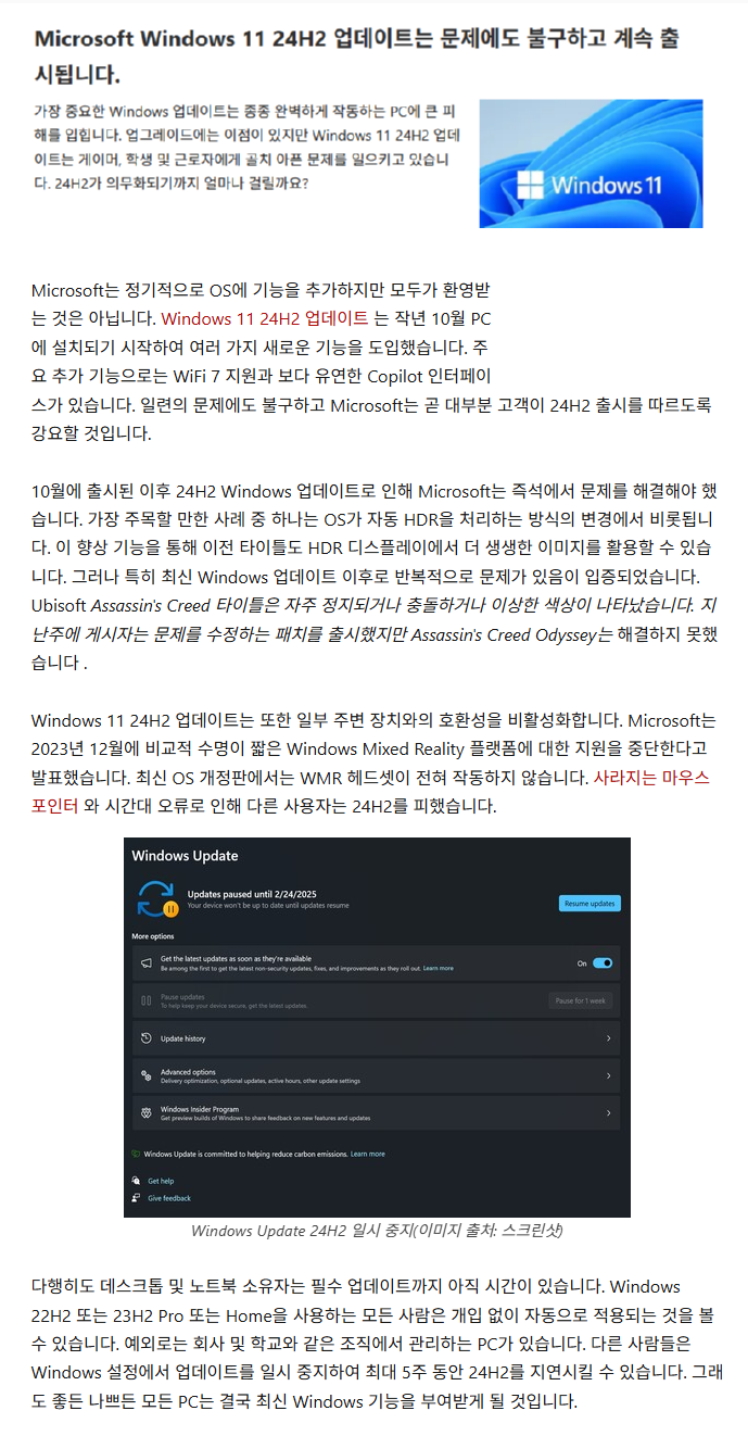 24H2는 아직 버그가 있지만, 곧 해결되기를 바래봅니다.....ㅎ
