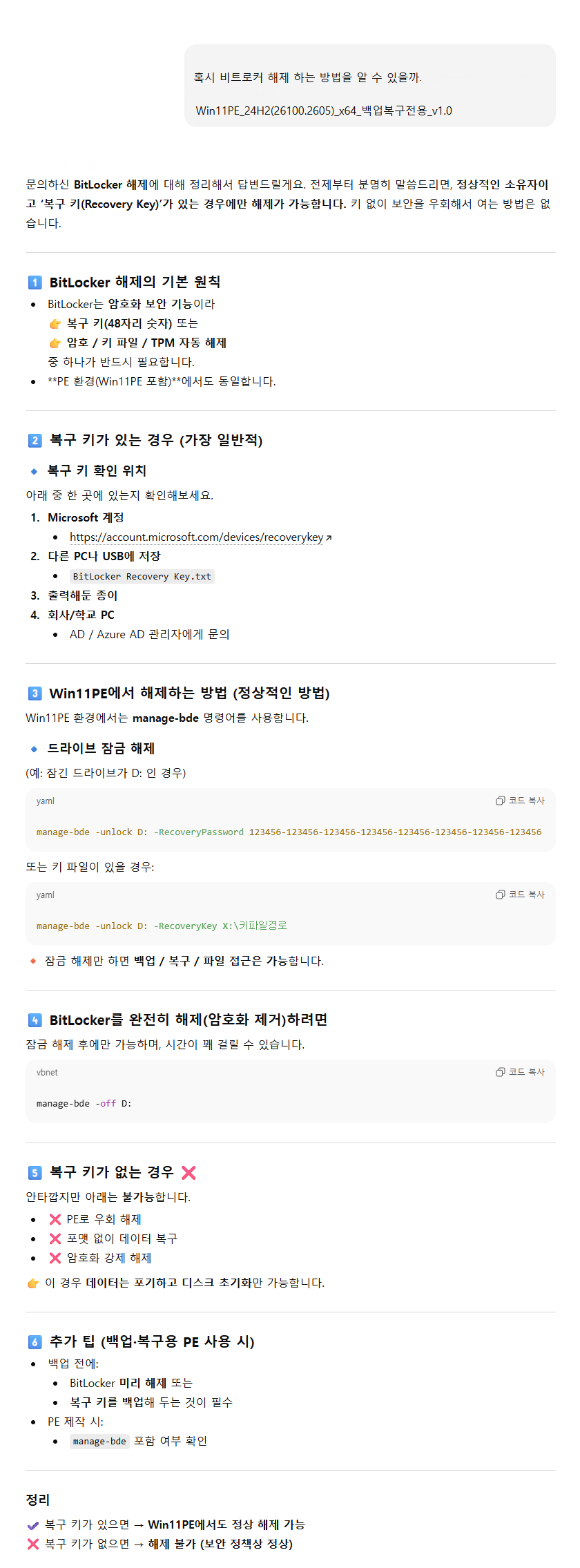 [WiinPE에서 [BitLocker]를 해제하는 방법]