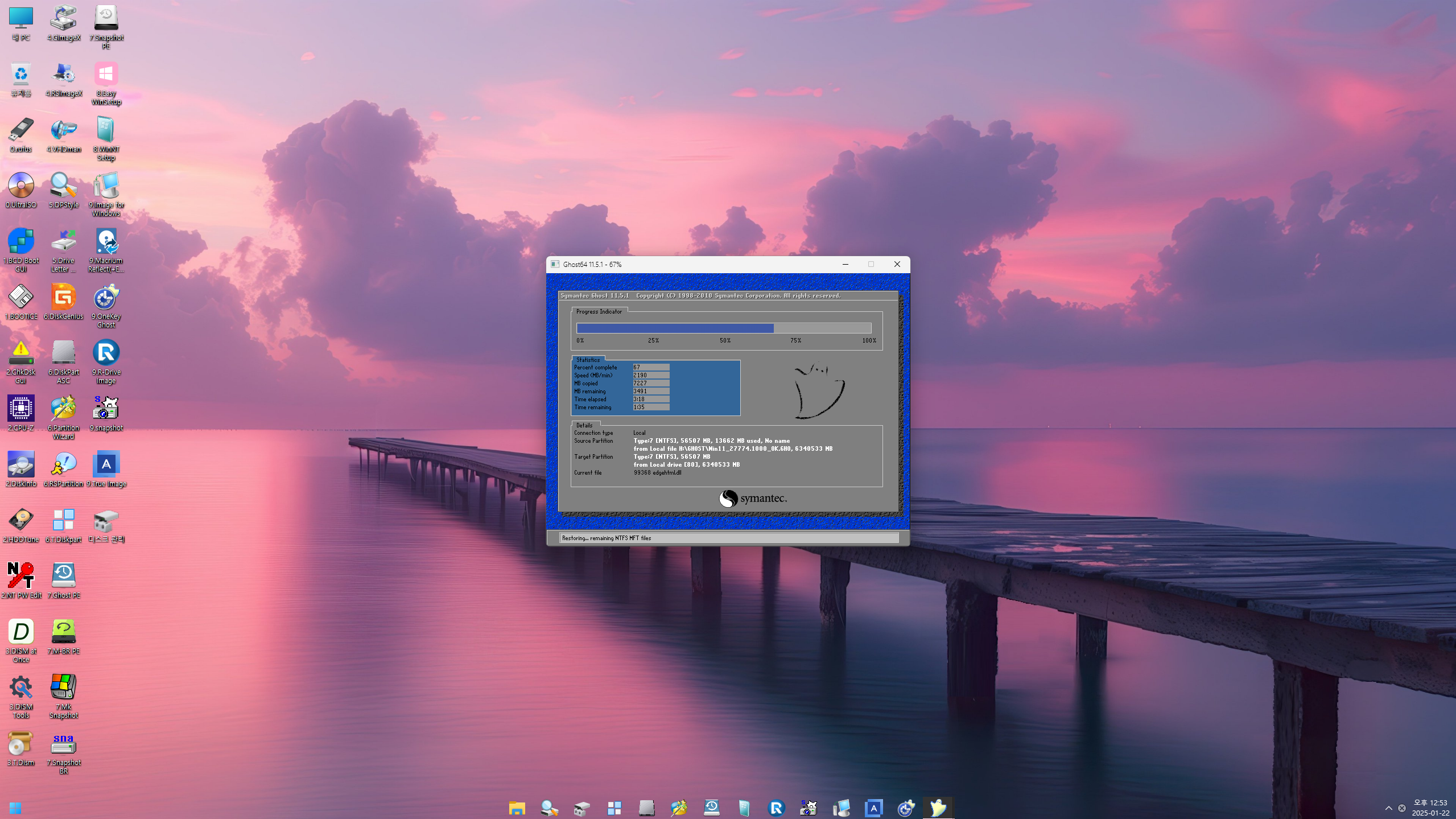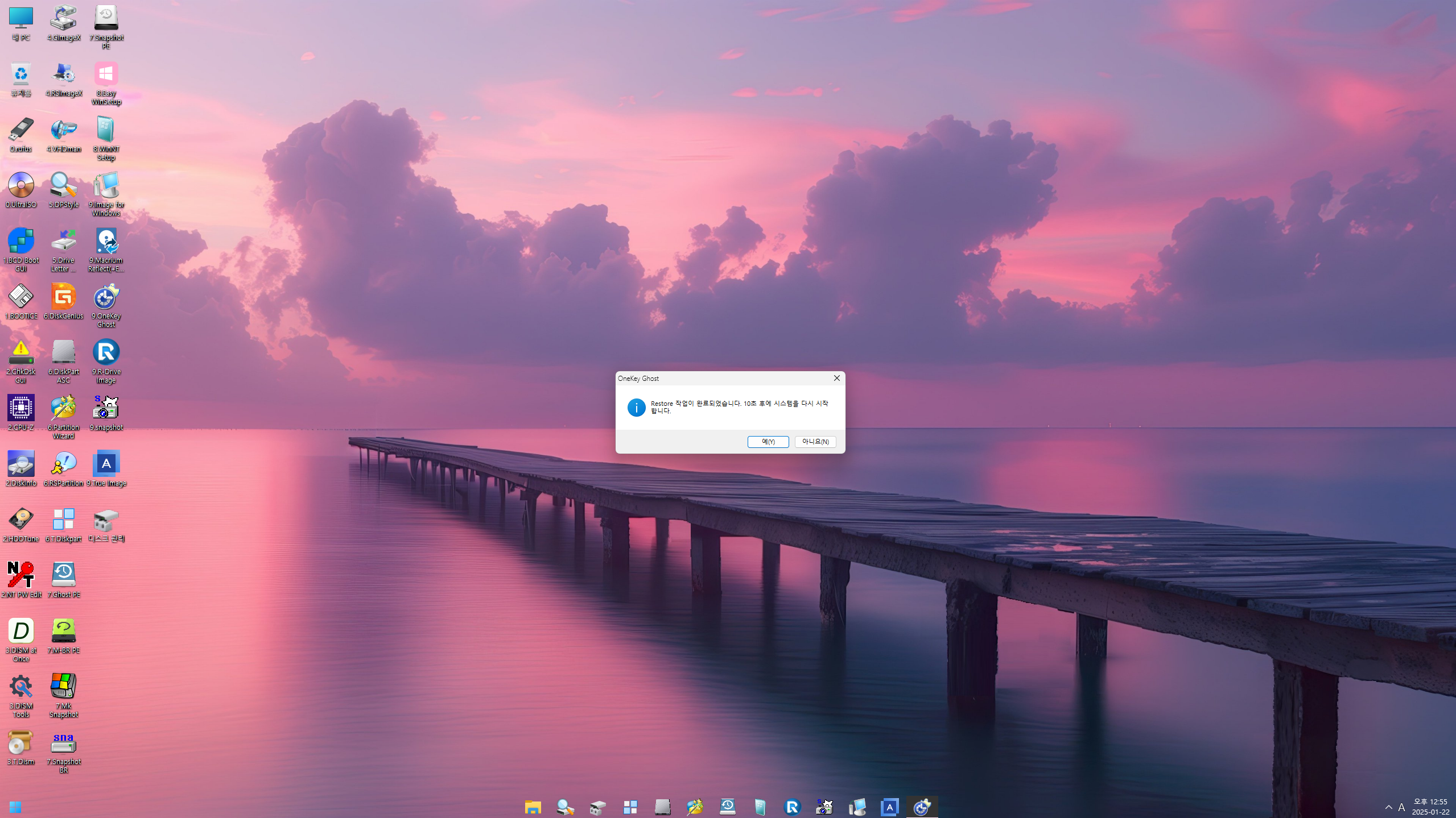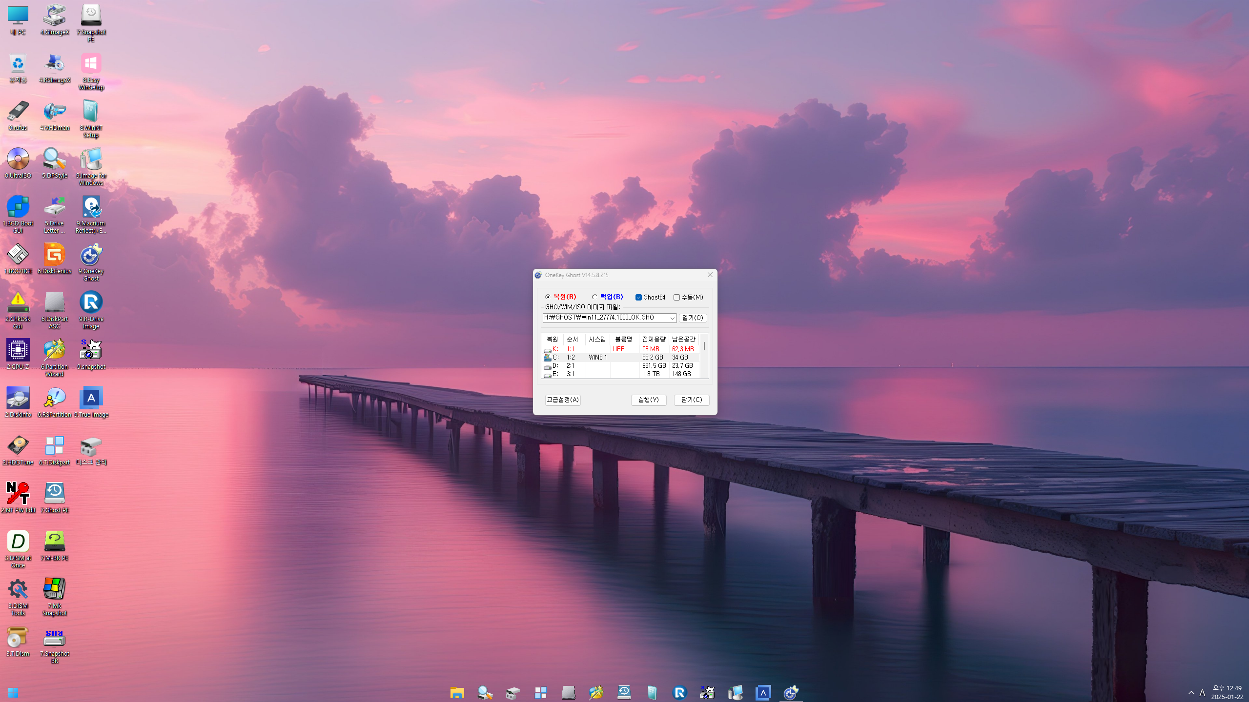 PE로 실컴에 부팅해서 기존 백업본으로 복구해봤습니다..