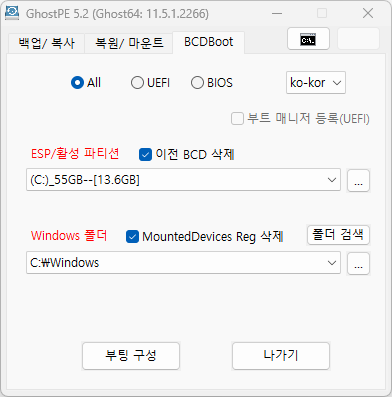 PE를 USB에 굽는 방법 (UEFI / BIOS 부팅 둘 다 가능)