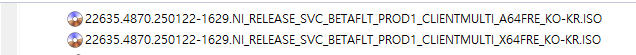 아래 파일은 UUP dump에서 배포하는 스크립트를 이용해서 MS에서 배포하는 파일(ESD, cab파일)로 만든 순수 ISO 파일입니다.