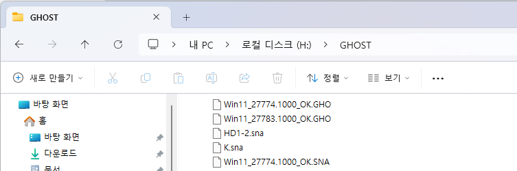 윈도우 설치후에 모든 셋팅이 끝나면 PE로 부팅해서 아래 처럼 윈도우를 백업해두고 있습니다.