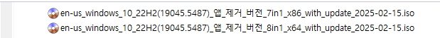 KB5051974 = 최신 누적 업데이트(19044.5487 / 19045.5487) (Last Cumulative update : LCU) (2025-02-11)
