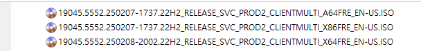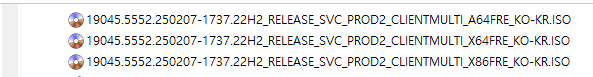 아래 파일은 UUP dump에서 배포하는 스크립트를 이용해서 MS에서 배포하는 파일(ESD, cab파일)로 만든 순수 ISO 파일입니다.