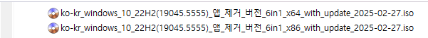 KB5052077 = 최신 누적 업데이트(19044.5555 / 19045.5555) (Last Cumulative update : LCU) (2025-02-25)