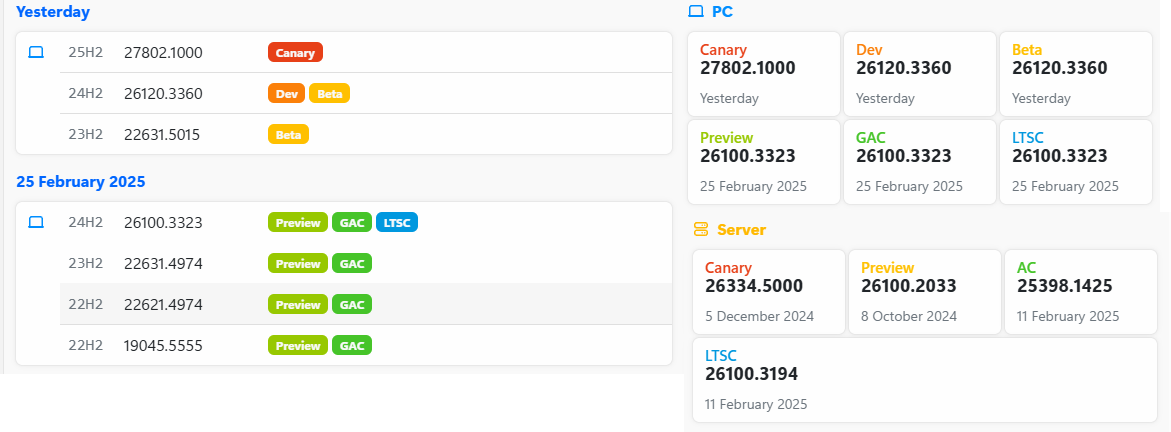 ○ 미리보기 채널 [Release Preview] = Windows 11 : 빌드 26100.3025 (= 참가자 빌드)