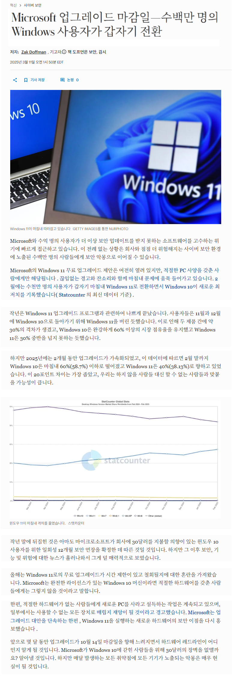 | Windows 10 종료가 다가오면서 Windows 11이 더욱 인기를 얻고 있습니다 (0) | 2025.03.02 |