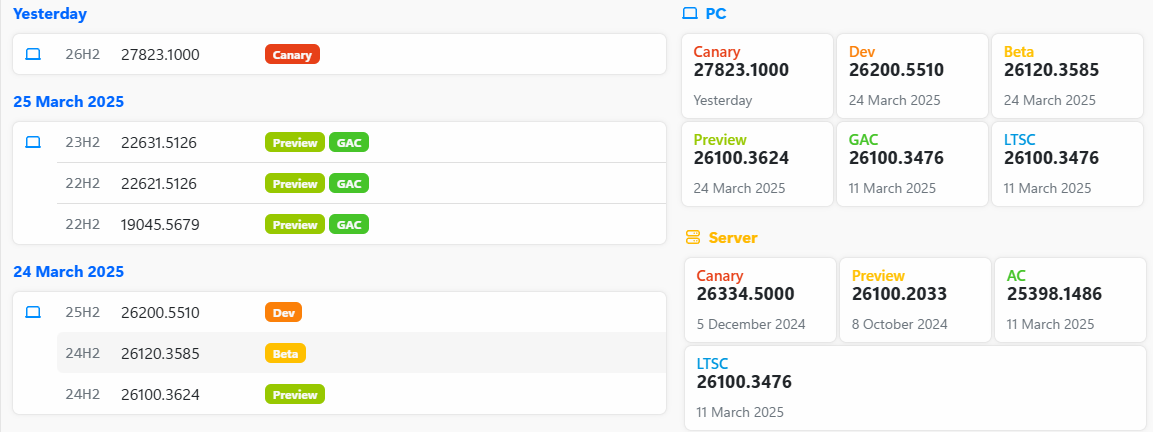 ○ 개발자 채널 [Canary] = Windows Server vNext : 빌드 26376.5000 (= 참가자 빌드)