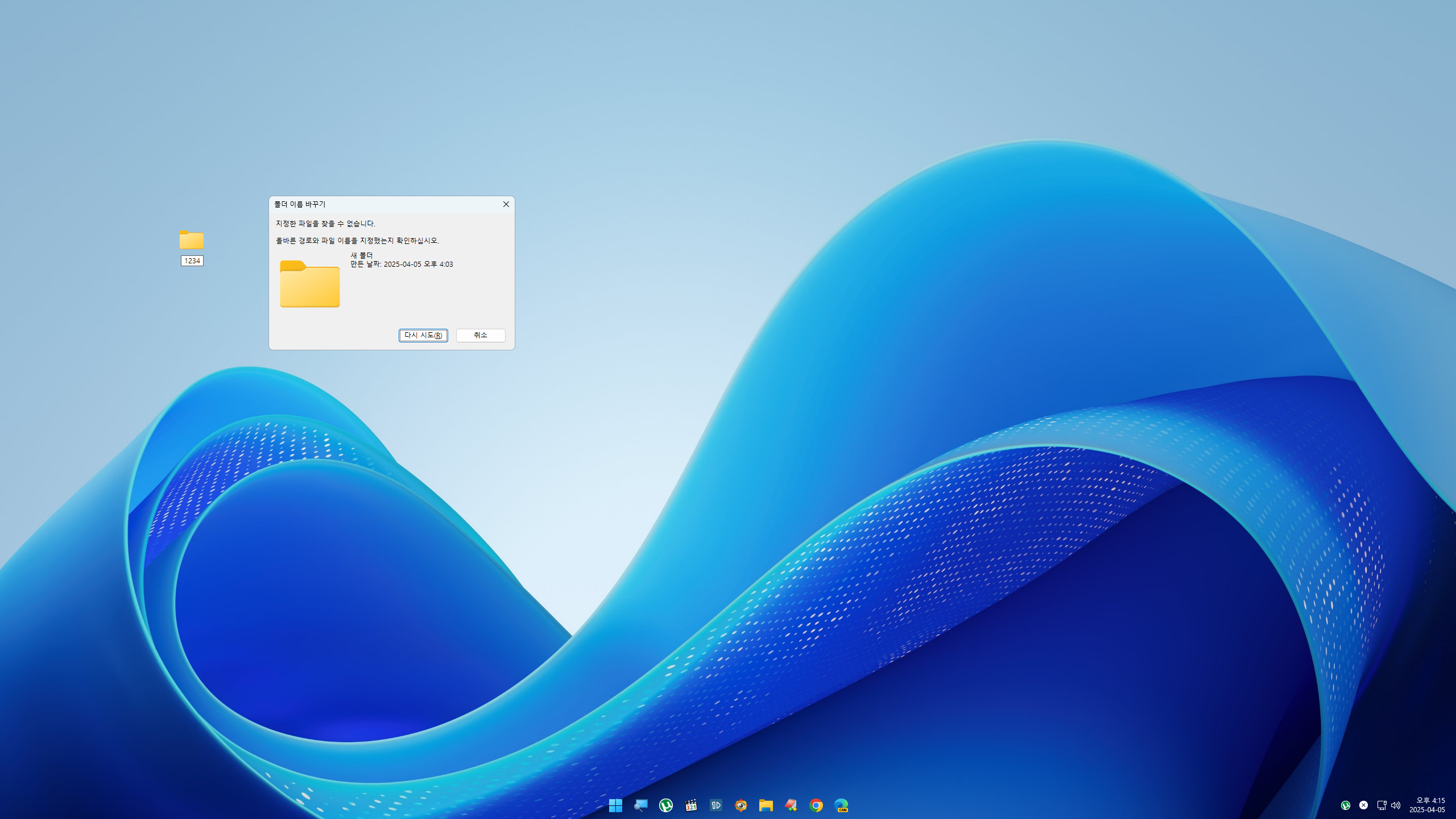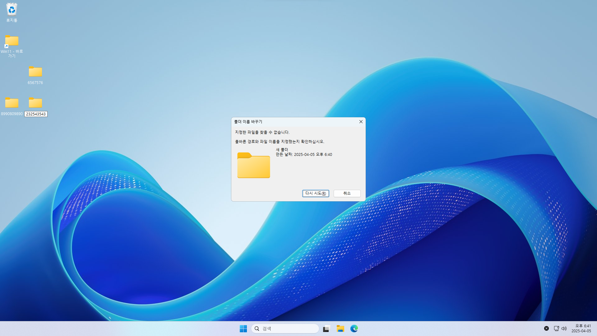 아래와 같이 폴더명 변경을 거부합니다...