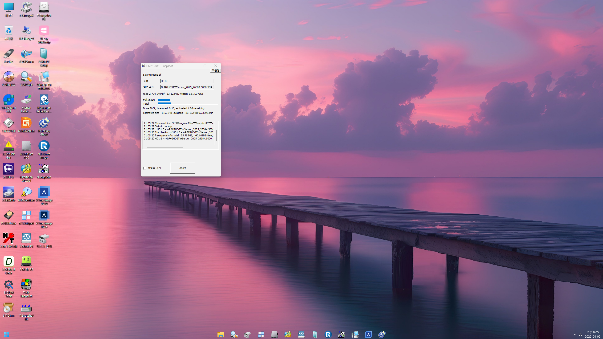PE로 부팅해서 셋팅 완료된 윈도우를 백업해둡니다...