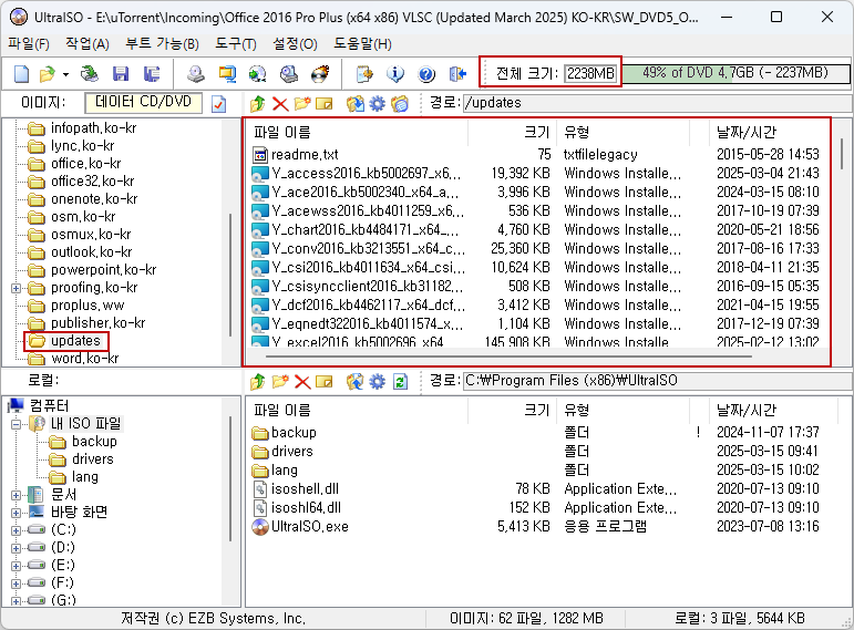 업데이터 파일 용량이 1.25GB 정도 되기 때문에, 설치 시간이 오래걸립니다...ㅠ