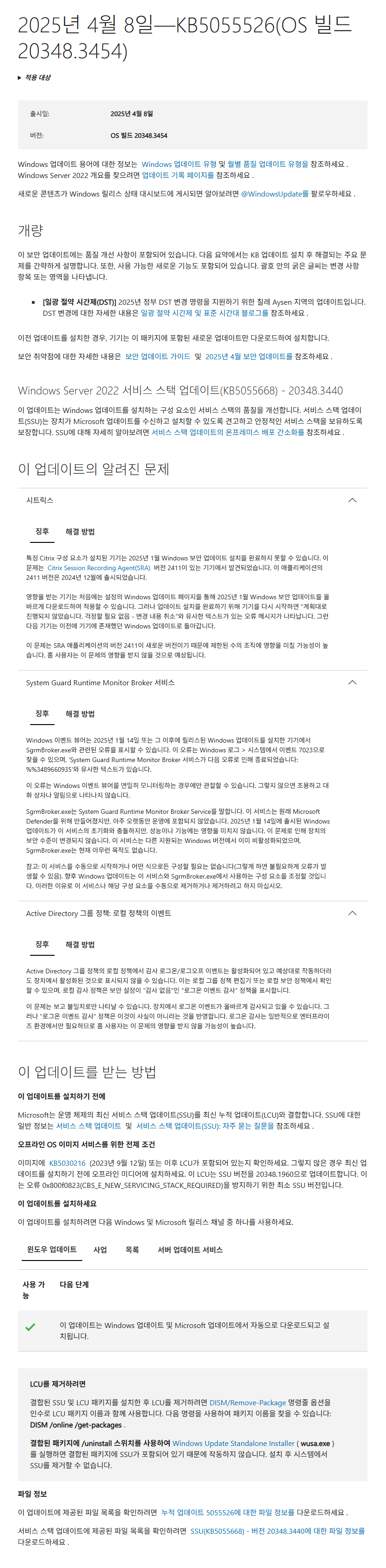KB5055526 = 최신 누적 업데이트(20348.3454) (Last Cumulative Update : LCU) (2025-04-08)