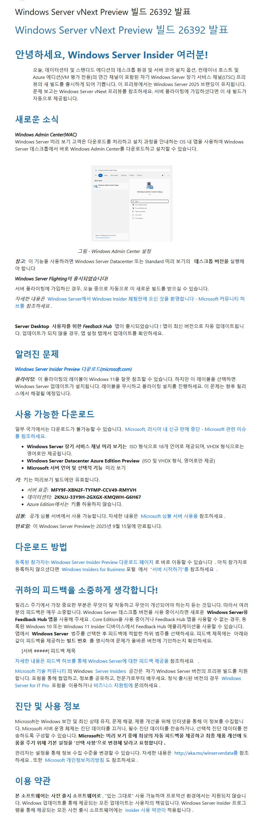 서버 프리뷰 빌드가 요즘 2주 간격으로 새 빌드가 나오고 있습니다..ㅎ