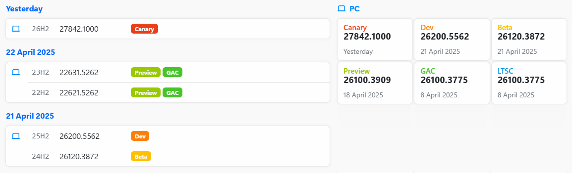 ○ 개발자 채널 [Canary] = Windows 11 : 빌드 27842.1000 (= 참가자 빌드)