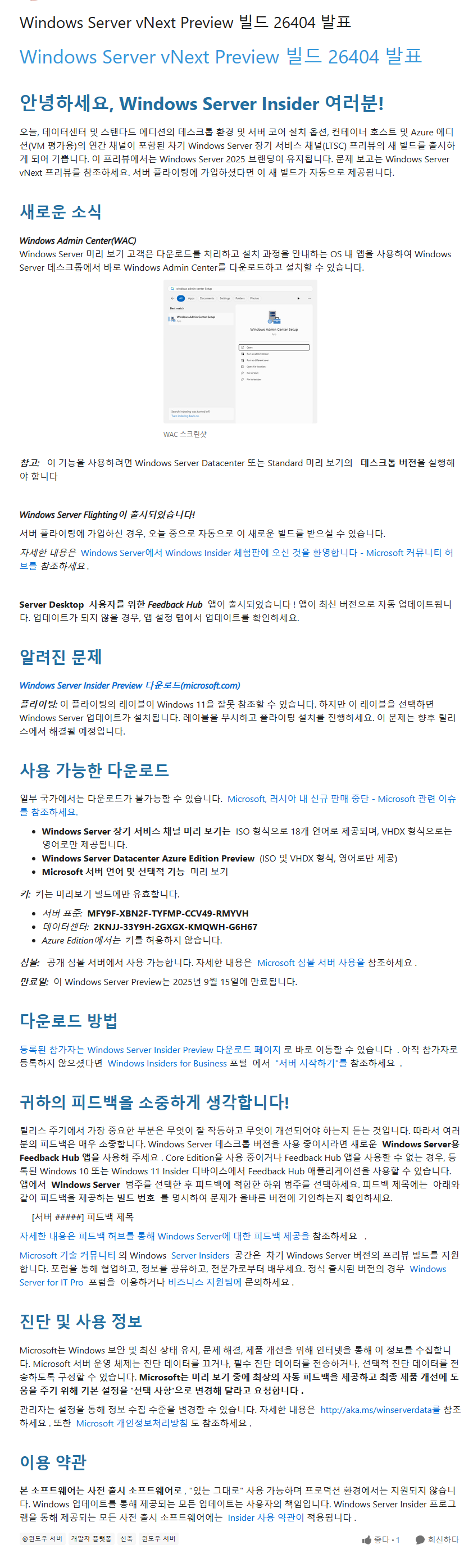 | Windows Server vNext Insider Preview 빌드 26404.5000 통합판 [배포 종료] (2) | 2025.05.02 |