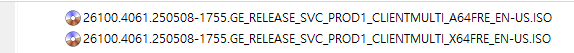 ○ 일반 사용자 채널 = Windows Server 2025 : 빌드 26100.4061 (= 일반 사용자 빌드)