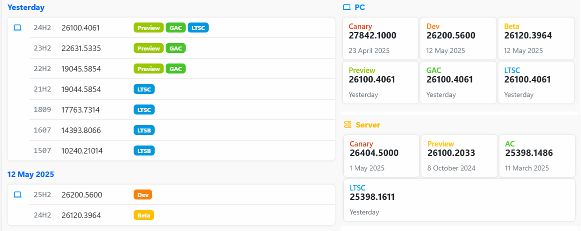○ 개발자 채널 [Canary] = Windows 11 26H2 : 빌드 27842.1000 (= 참가자 빌드)