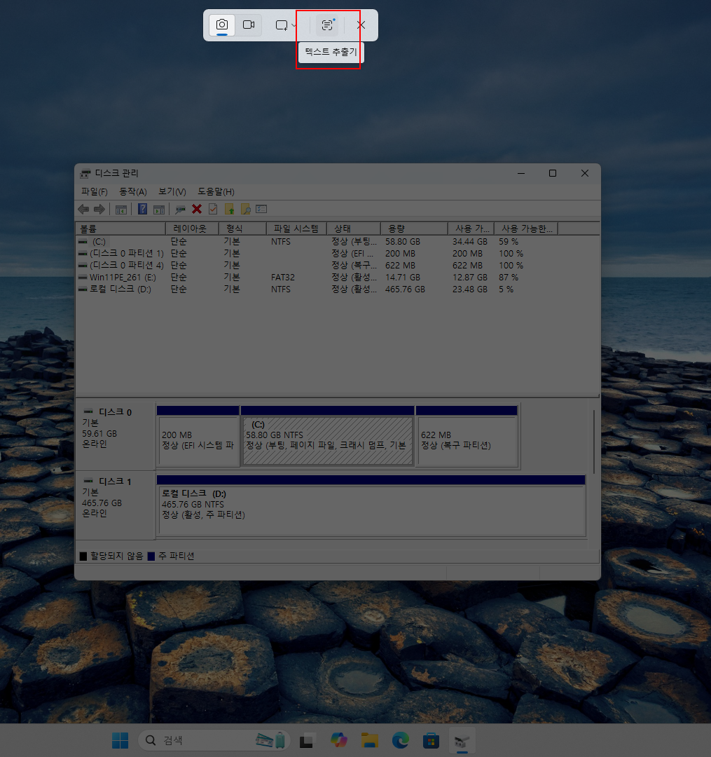 📌⇒ 디스크 관리자를 확인했습니다.