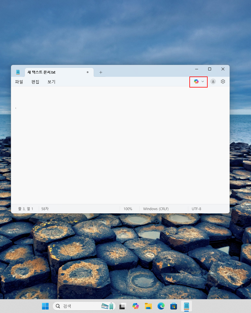 메모장에 Copilot 아이콘이 추가되었습니다...