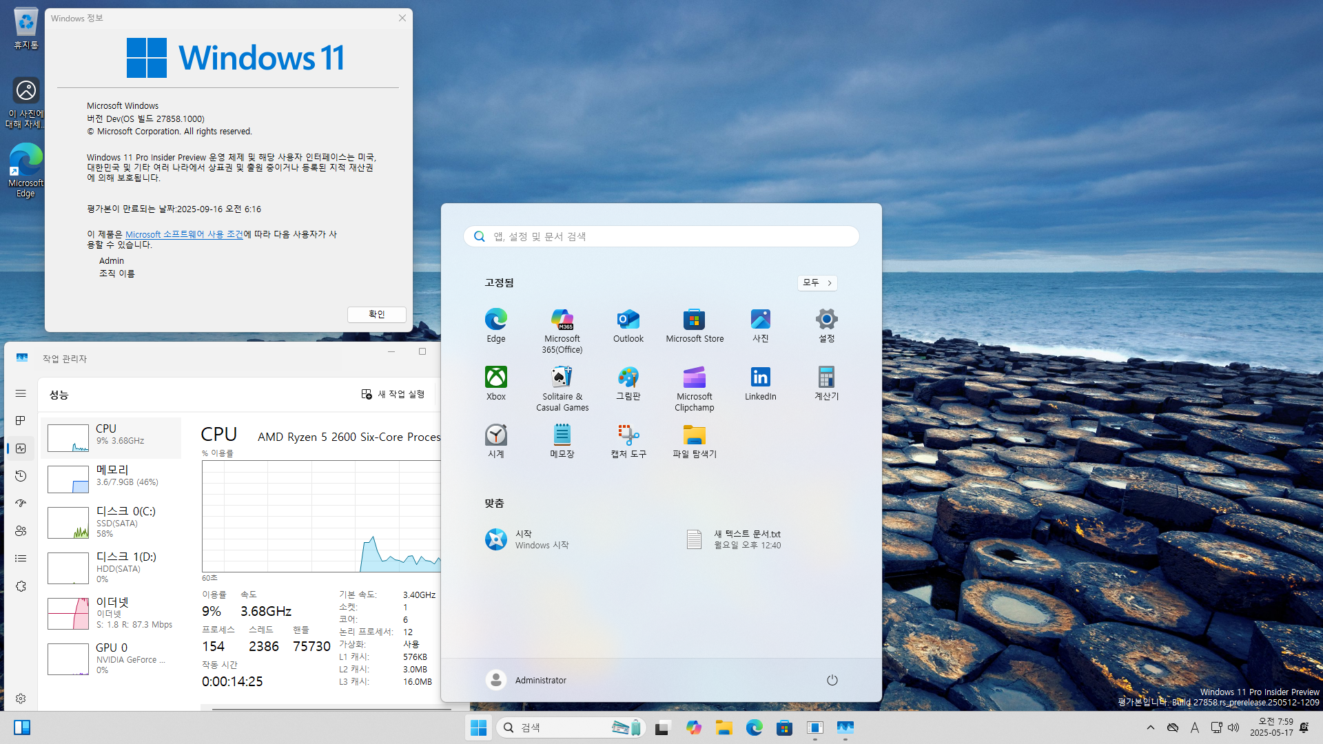 내년 가을에 정식 출시할 Windows 11 26H2의 프리뷰 빌드입니다...ㅎ
