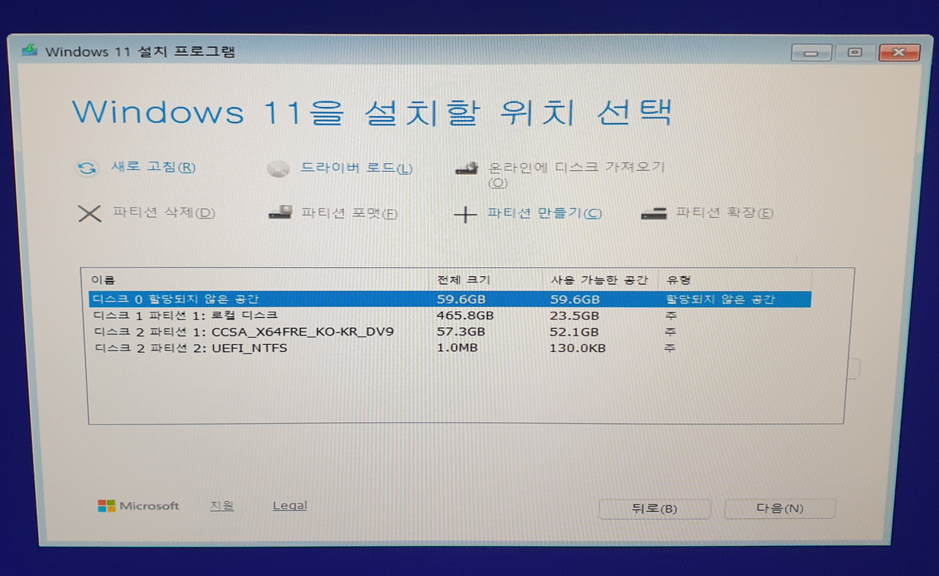 📌⇒ C 드라이브 디스크를 파티션 전부 삭제하고 [다음] 버튼을 눌렀더니... 저렇게... [Create virtural Disk] 라고 라벨이 표시됩니다.