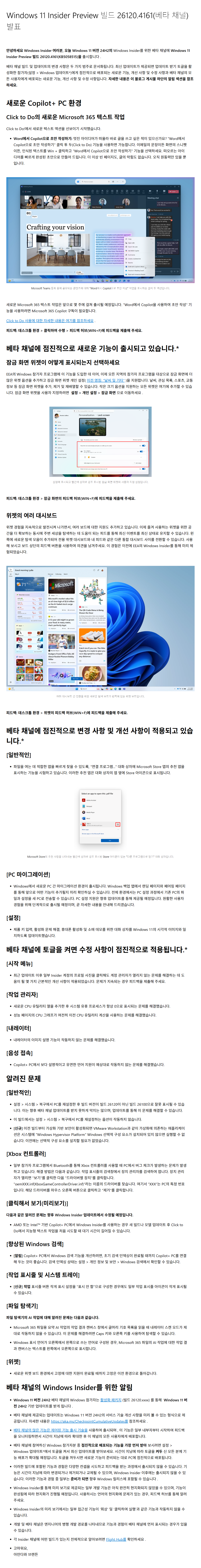 이 업데이트는 인사이드 참가자들에게 테스트 및 피드백 목적으로 배포되는 빌드입니다.