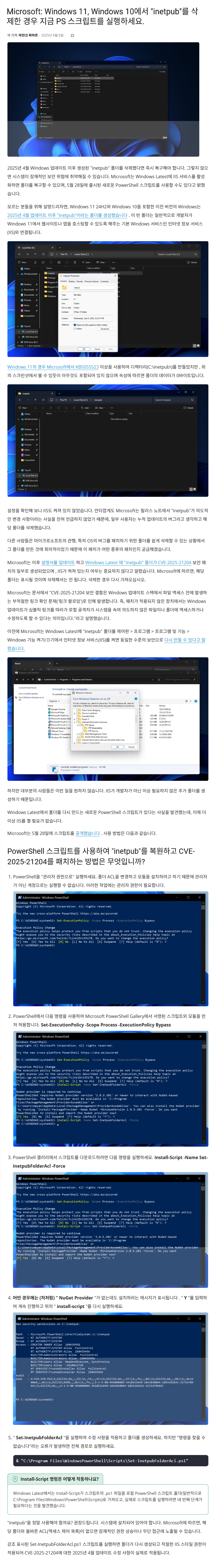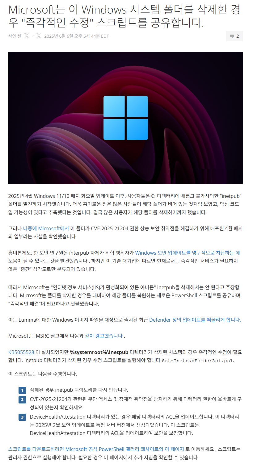 아래 압축파일 풀어서 Set-inetpubFolderAcl.ps1 폴더를 마우스 우측 마우스로 실행하시면 됩니다..