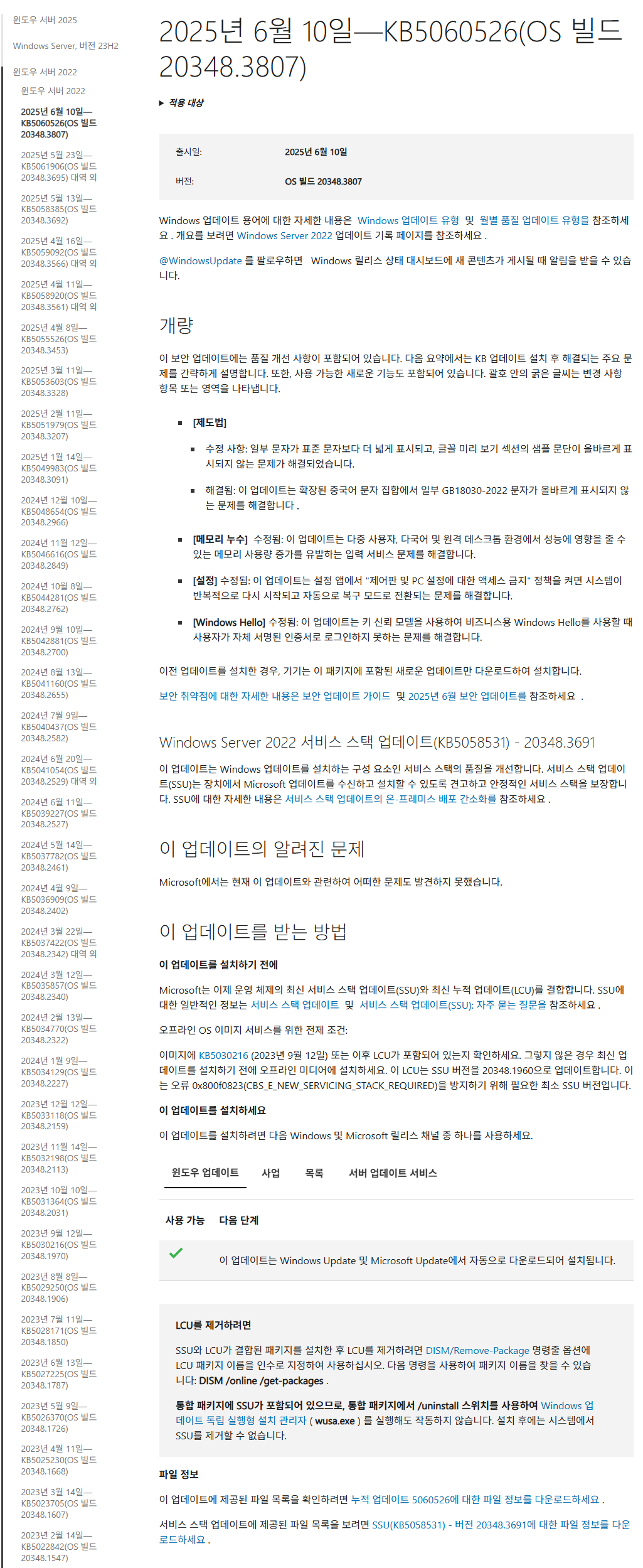 KB5060526 = 최신 누적 업데이트(20348.3807) (Last Cumulative Update : LCU) (2025-06-10)