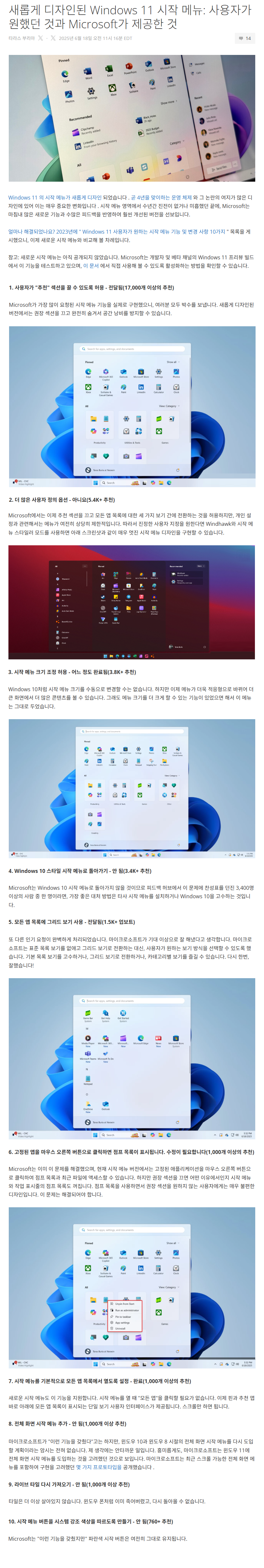 시작 메뉴는 새롭게 변경되어야지, 과거로 회향하면 안되기 때문입니다.