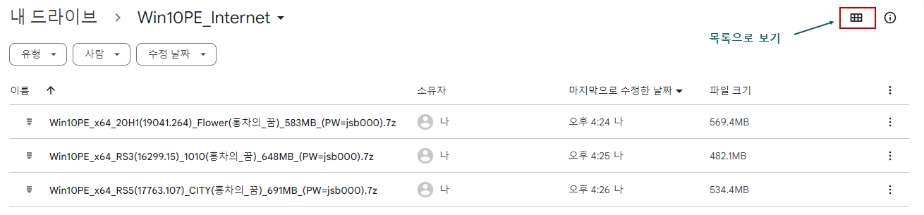 [목록으로 보기] 버튼을 누르면 파일을 간단히 볼 수 있습니다.
