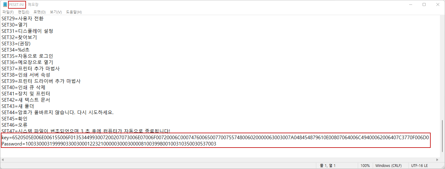 정상적으로 해제되면 파일 탐색기나 notepad.exe의 "열기" 메뉴를 통해 복사/백업 가능합니다.