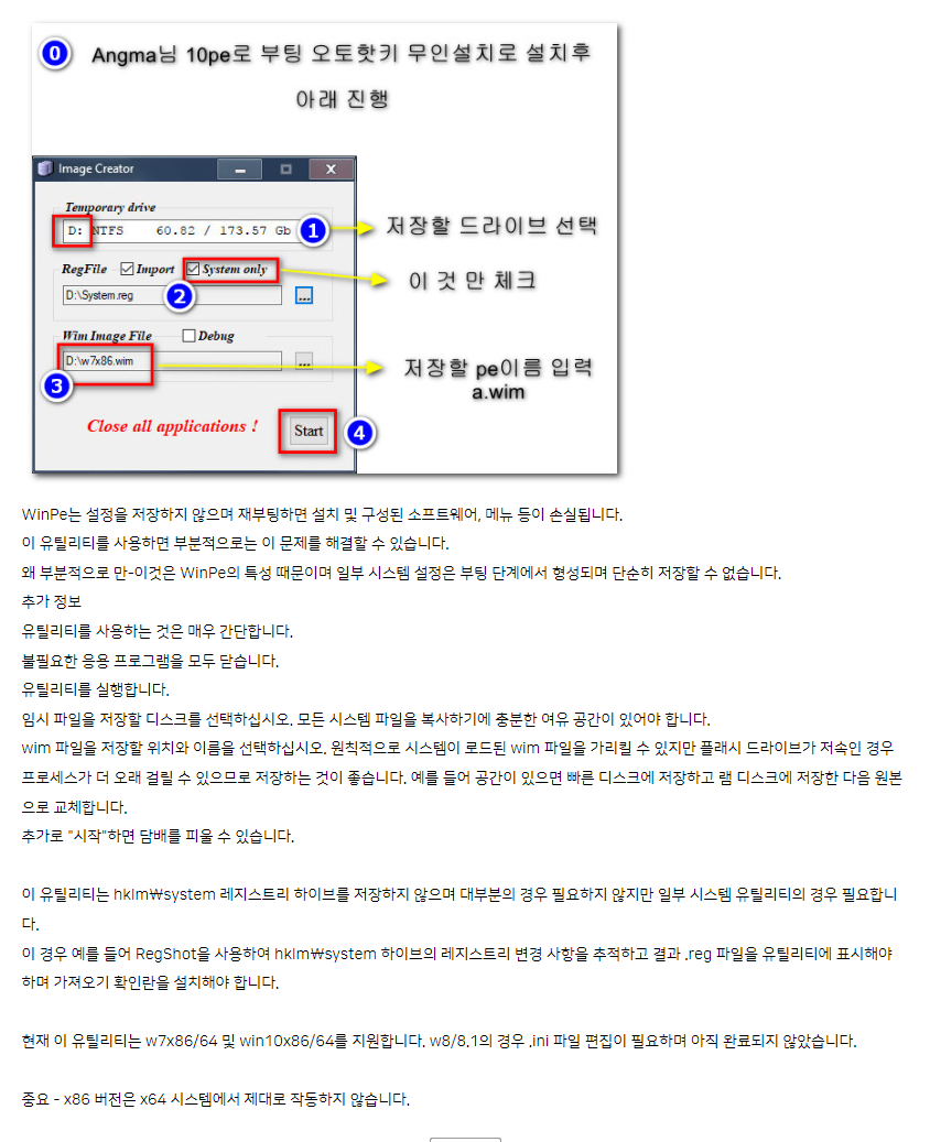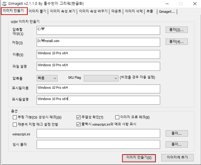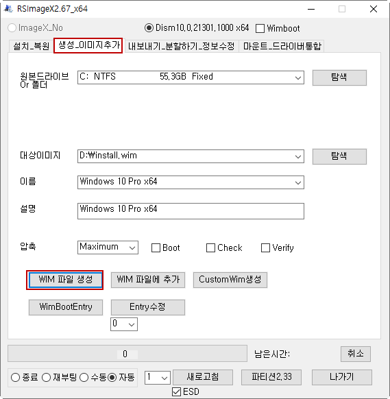 그런 다음 아래 프로그램 설명대로 새로운 wim 파일을 만듭니다.