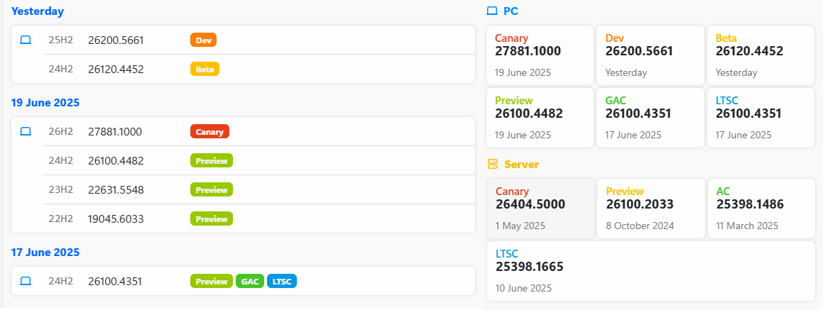 ○ 개발자 채널 [Canary] = Windows 11 26H2 : 빌드 27881.1000 (= 참가자 빌드)
